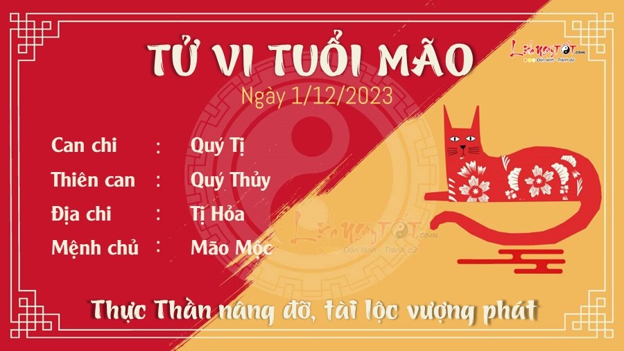 Sự xuất hiện của cát tinh Thực Thần trong hôm nay báo hiệu một ngày vượng tài lộc với Mão. Được Thần Tài đồng hành, tuổi Mão có một ngày thu hoạch đáng kể về tiền bạc, nếu có việc kinh doanh, đầu tư gì cần thực hiện thì nên tiến hành trong ngày hôm nay. Vận may về tiền bạc đang đứng về phía bạn nên phải chớp cơ hội.
