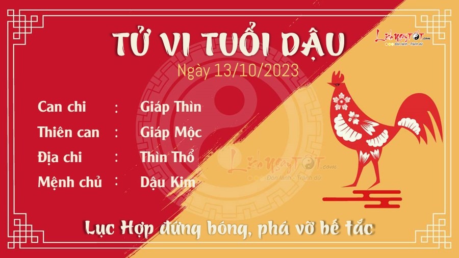 Với việc có Lục Hợp che chở, người tuổi Dậu có thể sẽ được quý nhân phù trợ, công danh sự nghiệp tiến triển tốt đẹp, phá vỡ những bế tắc trước đó. Bản mệnh sẽ có cơ hội thể hiện được tài năng, tạo tiền đề phát triển cho tương lai, đường thăng tiến mở rộng vô cùng. Giờ bạn chỉ cần xác định rõ mục tiêu và thẳng tiến tới đích.