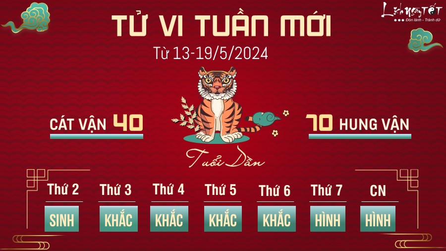 Tuần mới việc giải tỏa các u uất, trầm lắng trong nội tâm chính là nhiệm vụ của tuổi Dần vì có như thế bạn mới có thể tập trung, quay lại công việc một cách hiệu quả. Đã đến lúc bạn cần tìm cách giải thoát bản thân khỏi những suy nghĩ tiêu cực và bế tắc.