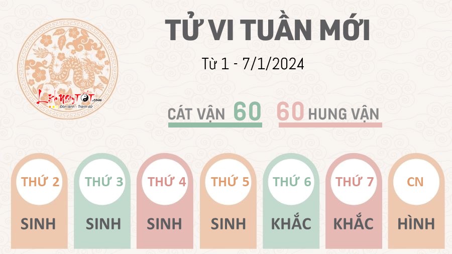 Tiếp nối tử vi tuần trước, tuần mở đầu năm mới 2024 của người tuổi Tý được dự báo sẽ có cả hung lẫn cát. Hung tinh Thái Tuế chiếu mệnh mang tới những thách thức nhất định nhưng nhờ bộ đôi cát tinh Chính Ấn và Thiên Ấn hóa giải nên mọi chuyện vẫn nằm trong tầm kiểm soát của con giáp này.