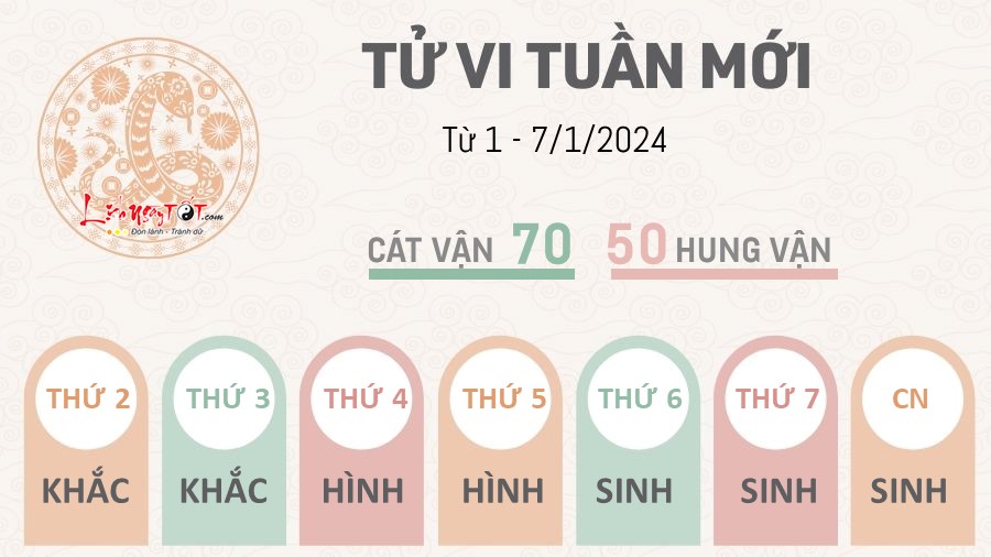 Tuần mới có cát tinh Tử Vi nâng đỡ, người tuổi Tị có nhiều lợi thế trong những kế hoạch mà mình đang theo đuổi. Bạn làm việc chăm chỉ và có trách nhiệm nên được cấp trên ưu ái, tạo nhiều điều kiện để phát huy bản thân. Dù gặp khó khăn đôi chút nhưng mọi người xung quanh đều nhiệt tình giúp đỡ bạn.