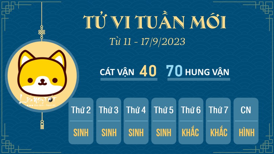 11/09/2023 15:26Tử vi tuần mới của 12 con giáp từ 11 – 17/9/2023: Tý cần giữ thái độ khiêm tốn, Thìn bị hung tinh Ngũ Quỷ án ngữ
