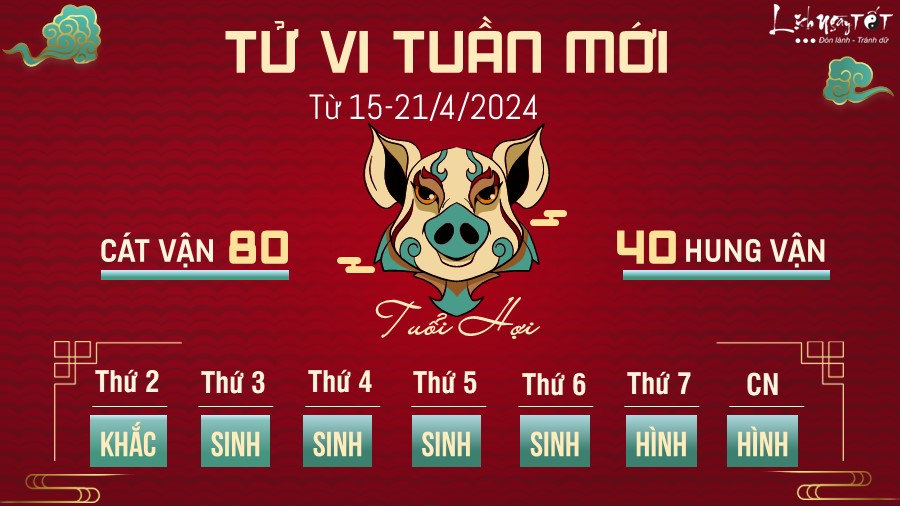 Tuần này con giáp tuổi Hợi sẽ chứng kiến những sự thay đổi mạnh mẽ trong cuộc sống. Những cơ hội mới sẽ tiềm ẩn trong những tình huống khó khăn, nhưng miễn là bạn có mục tiêu rõ ràng, bạn vẫn sẽ vượt qua những chướng ngại và nắm bắt những cơ hội tiềm năng.