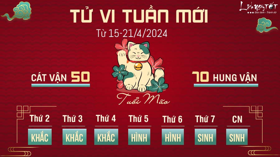 Tử vi tuần mới của 12 con giáp từ 15-21/4/2024, đây không phải là tuần thuận lợi đối với con giáp tuổi Mão, thậm chí gặp chút trở ngại vì có tiểu nhân ngăn trở. Tuy nhiên, với bản lĩnh của mình, bạn sẽ sớm vượt qua được tất cả mọi chuyện thôi.