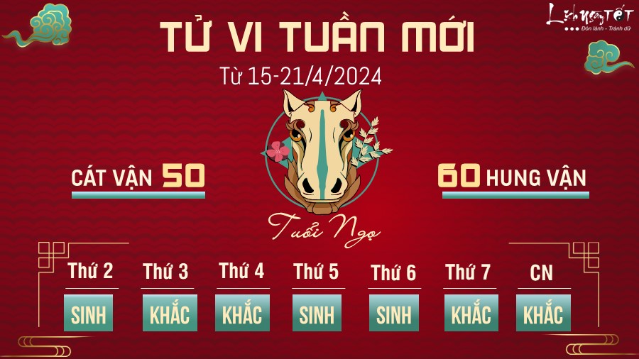 Tình duyên không được như trông đợi nhưng tuổi Ngọ nên tránh chìm sâu vào nỗi thất vọng này. Bạn cũng sẽ có cơ hội gặp lại một vài người bạn cũ để củng cố mối quan hệ, cập nhật cuộc sống của nhau trong bầu không khí hân hoan và ấm cúng.