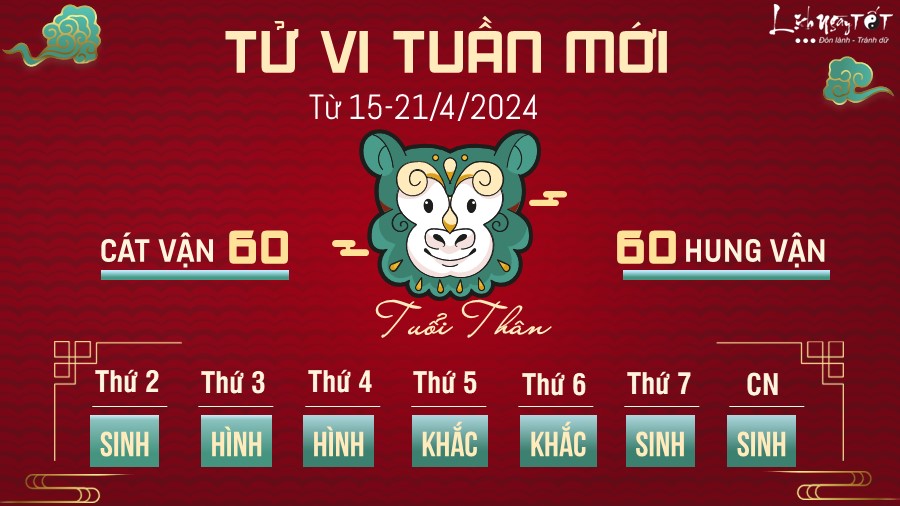 Tuần này có thể tình cảm đôi lứa không như ý nhưng cũng là lúc tuổi Thân nên tham gia các hoạt động vui vẻ bên gia đình. Sự hiện diện của bạn sẽ khiến không khí ngôi nhà trở nên dễ chịu, ấm cúng. Tại nơi làm việc, thái độ tích cực của bạn sẽ khiến mọi người thoải mái hơn, mối quan hệ với đồng nghiệp được cải thiện tích cực.