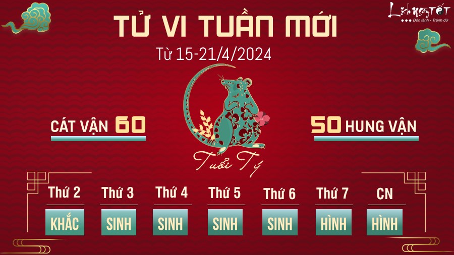 Tuần mới mang những nguồn năng lượng tích cực liên quan đến tinh thần và cảm xúc cho tuổi Tý. Hãy sẵn sàng vì sắp tới bạn sẽ đón nhận nhiều cơ hội xây dựng những mối quan hệ tốt đẹp trong tình cảm lẫn công việc.