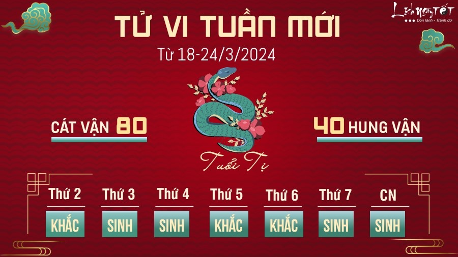 Tử vi tuần mới của 12 con giáp từ 18-24/3/2024, có các tín hiệu khá tốt để hối thúc con giáp tuổi Tị cần bước ra khỏi vùng an toàn bấy lâu nay của mình, bởi bạn đang thực sự muốn thử cái gì đó mới mẻ xen lẫn chút mạo hiểm. Hãy tận dụng cơ hội này để làm mới bản thân và cuộc sống của mình.