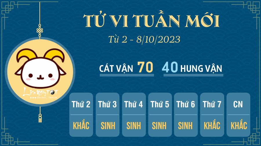 Tuần mới chính là thời điểm hoàn hảo để con giáp tuổi Mùi tập trung hoàn thành những đầu việc cần thiết trong kế hoạch của mình. Những nỗ lực của bạn sẽ đạt được những kết quả vượt ngoài mong đợi.