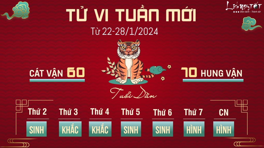Tuần mới tuổi Dần tự gieo rắc rối cho mình vì bạn không nhận ra rằng bản thân đang khá tham lam, vừa muốn đạt được kết quả cao trong công việc, kiếm được nhiều tiền lại vừa có thể vui chơi thỏa sức và ở bên người thân. Bạn nên có sự ưu tiên cho từng việc trong từng thời gian nhất định của mình mà thôi.