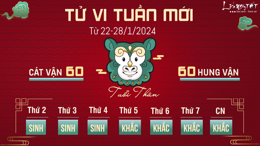 Người tuổi Thân có cảm giác lạc lõng, cô đơn trong mối quan hệ hiện tại. Không những thế, tuần mới mang tới năng lượng thù địch, khiến bạn rất khó hợp tác với mọi người, thế nên lúc này bạn dành thời gian cho bản thân sẽ tốt hơn.