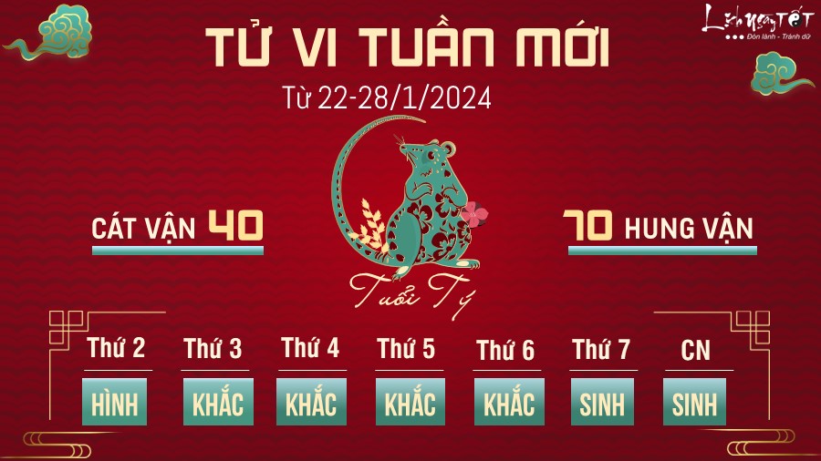22/01/2024 15:02Tử vi tuần mới của 12 con giáp từ 22-28/1/2024: Thân từ tốn, Tý gặp may