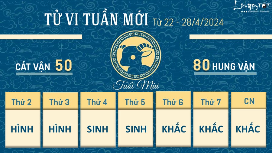 Thành công đang gõ cửa nhà tuổi Mùi khi tuần này bạn được Thiên Đức trợ mệnh. Chẳng cần đi đâu xa, làm điều gì quá lớn lao hay phải lao mình vào những công việc đòi hỏi sự kiên nhẫn lâu dài, bạn vẫn sẽ thành công theo cách riêng của mình. Thành tích sẽ vô cùng đáng nể.