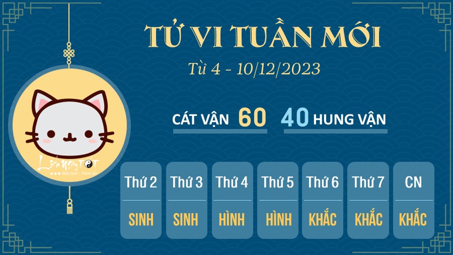 04/12/2023 01:51Tử vi tuần mới của 12 con giáp từ 4 – 10/12/2023: Tý có vận may tài chính, Dần đột phá