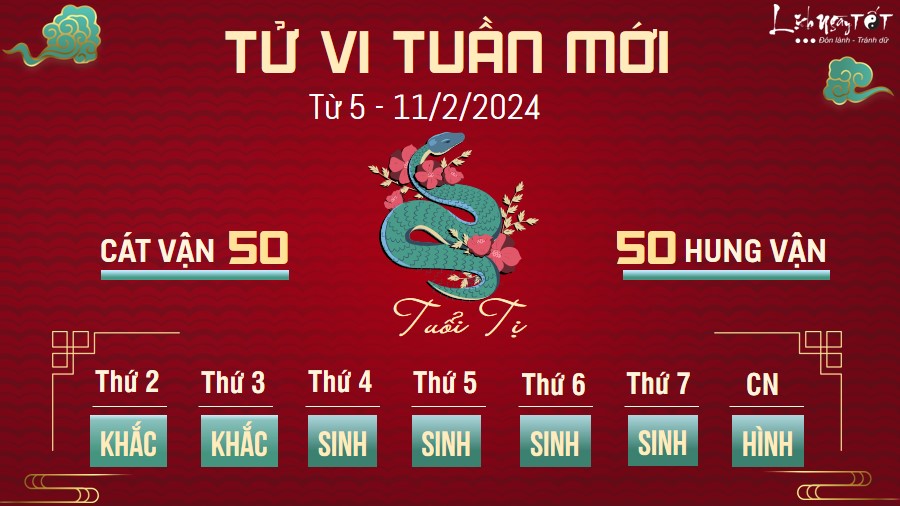 Những ngày cuối cùng của năm Quý Mão âm lịch trôi qua khá bình yên và nhẹ nhàng với người tuổi Tị. Bạn giữ hòa khí với mọi người xung quanh, cùng tập trung giải quyết những công việc còn tồn đọng, không gác lại sang năm mới.