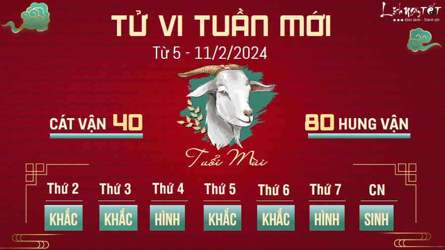 Nhìn chung người tuổi Mùi không phải trải qua quá nhiều khó khăn trong những ngày đi làm cuối năm. Bạn chỉ cần nhắc nhở mình tập trung để hoàn thành tốt các nhiệm vụ được giao, đừng lơ là hoặc tìm cách đùn đẩy công việc cho người khác là được.