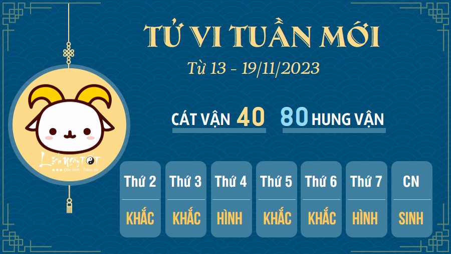 Nhiều nguy cơ trong sự nghiệp sẽ rình rập người tuổi Mùi trong tuần này. Bạn cần chú ý cách hành xử của mình, chớ nên nóng nảy với lãnh đạo hoặc đồng nghiệp xung quanh kẻo tự tay hủy hoại các mối quan hệ mình tốn công gây dựng.