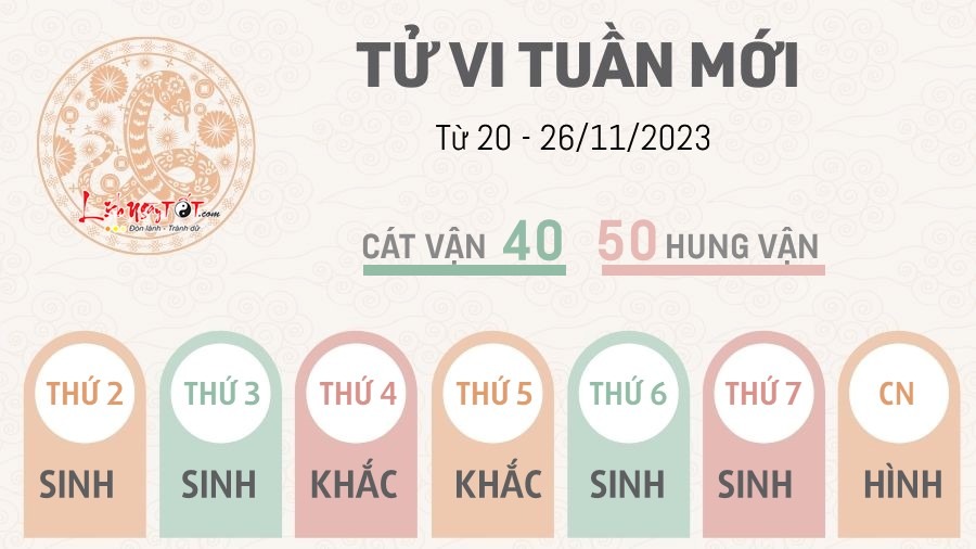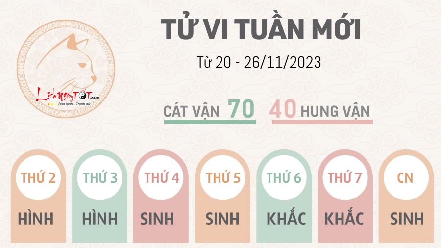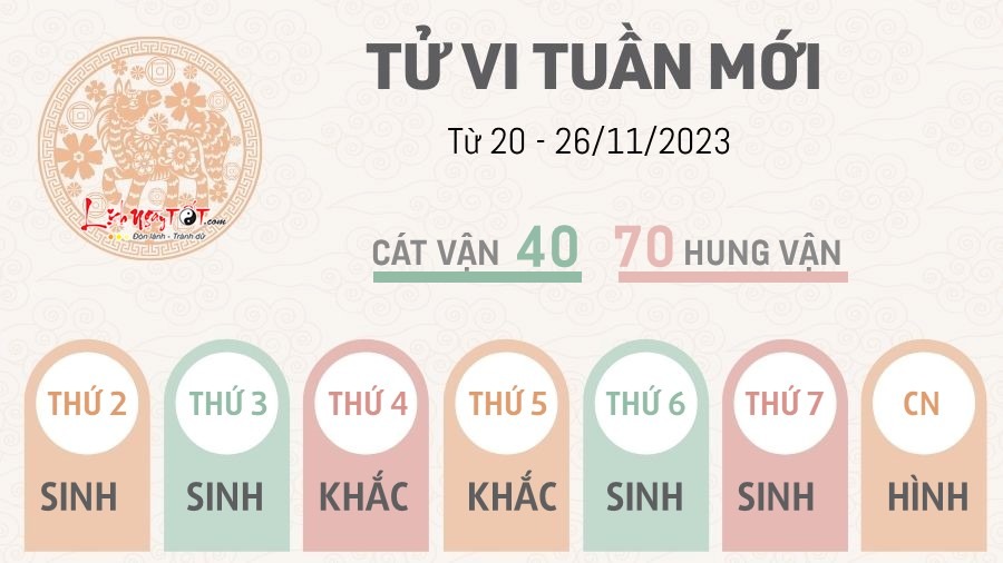 20/11/2023 14:58Tử vi tuần mới từ 20 - 26/11/2023 của 12 con giáp: Mão tiến bộ, Hợi sáng suốt