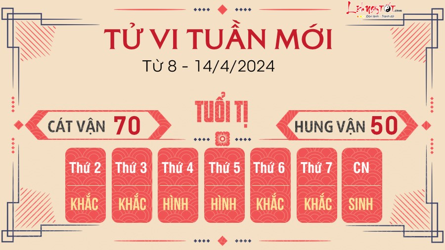 Bách Việt dự báo Tị khá thông minh và nhanh nhẹn trong tuần mới. Việc gì bỏ qua được bạn nên bỏ qua, không nên phí phạm thời gian để đôi co hay tranh cãi với người khác.