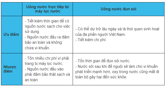 Với những thông tin trên, bạn hãy dựa vào nhu cầu sử dụng, thói quen sinh hoạt cũng như điều kiện kinh tế của gia đình mình để tự trả lời câu hỏi "uống nước trực tiếp từ máy lọc hay nước đun sôi tốt hơn". Nếu có điều kiện, việc sử dụng máy lọc nước sẽ đem lại nhiều lợi ích, an toàn cho sức khỏe hơn.