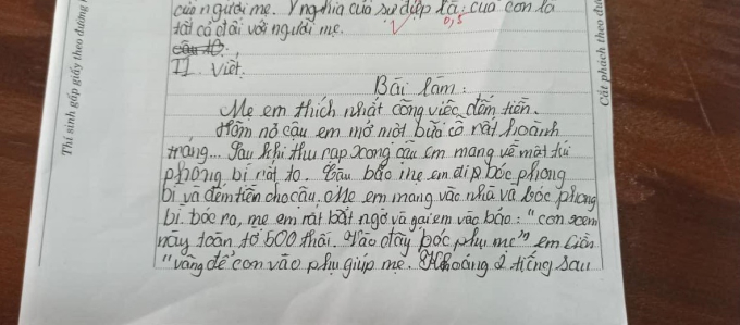 Nhưng ai mà ngờ học trò dưới đây lại có câu trả lời "bá đạo", đó là: Mẹ em thích nhất công việc đếm tiền.