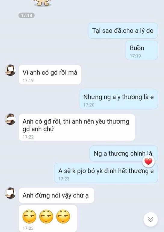 Cụ thể, đính kèm bài đăng là rất nhiều đoạn tin nhắn của cặp đôi. Anh chồng này luôn là người chủ động tấn công: “Anh đang nói chuyện nghiêm túc, anh không đùa với tình cảm đâu. Anh thấy có tình cảm với em từ lúc gặp em luôn. Anh cũng không biết, do duyên số nó đưa anh đi đến với em. Anh sẽ không bao giờ để em phải buồn và không bao giờ cho ai làm tổn thương em. Vì anh yêu em”.