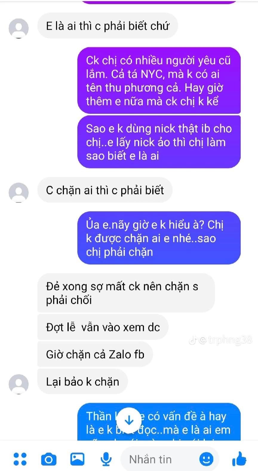 - Khiếp! Gu anh chồng này ngày trước cũng mặn nhỉ? Người yêu cũ gì láo nháo thế này? Chia tay biết người ta có vợ con rồi còn vào sục sạo soi mói hàng ngày.