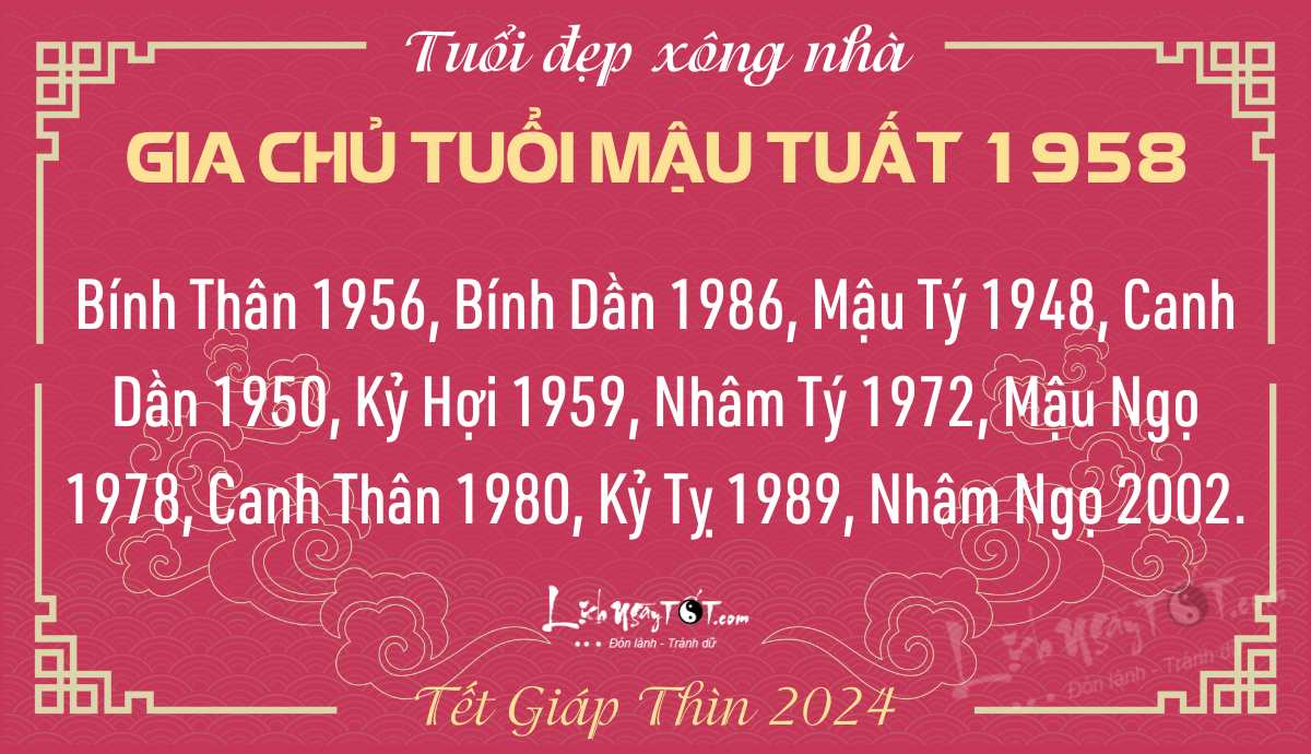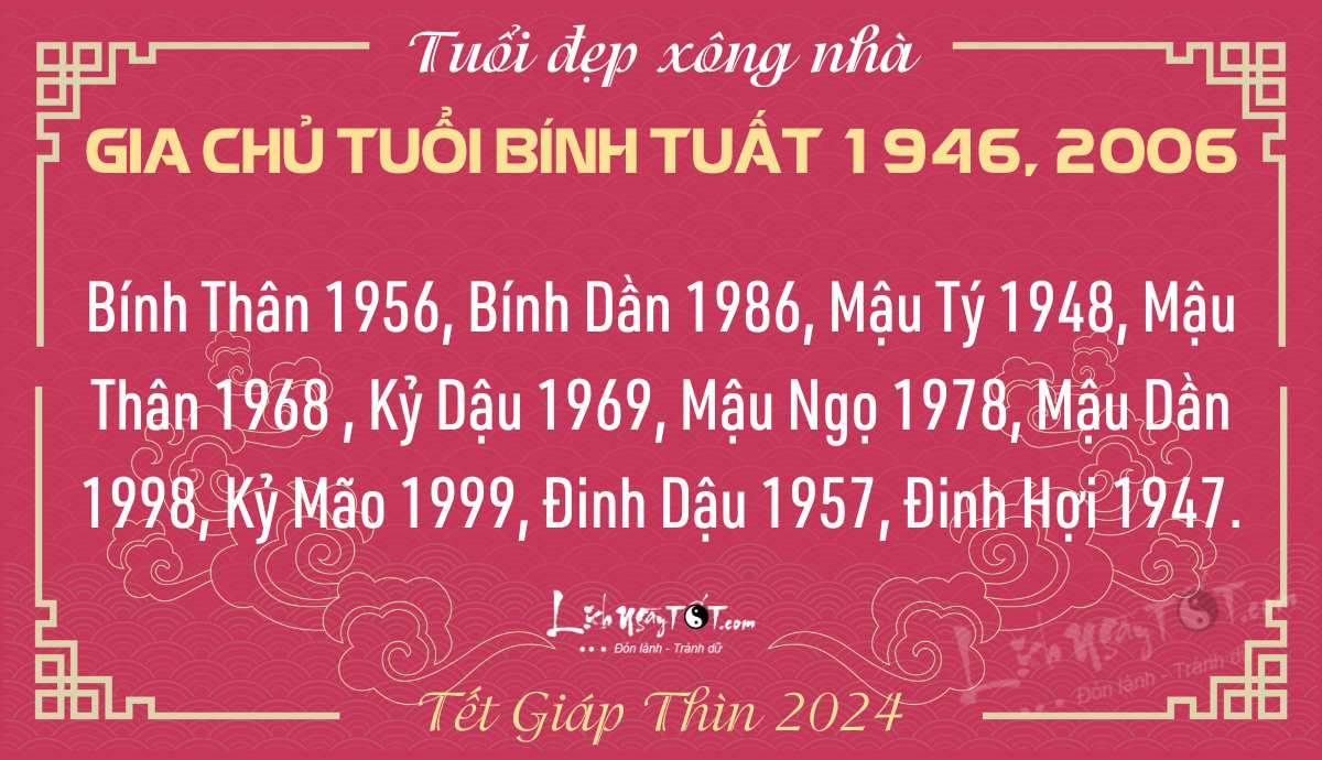 Theo cách này, các tuổi hợp xông nhà Tết Giáp Thìn 2024 với tuổi Tuất gồm các tuổi Mão, Dần và Ngọ.