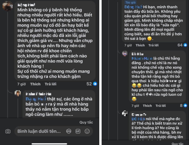 - "Nhân viên cũng là bộ mặt của nhà hàng, bây giờ nhân viên xử lý kém thì không được đăng lên để phản ánh chắc?" .