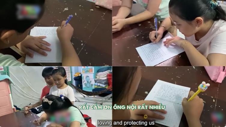 Trong thư của Gia Kiệt, cậu bé cũng bày tỏ lòng mình với ông bà nội: “Con là Gia Kiệt, con yêu ông bà nội nhiều lắm”. Còn Trâm Anh, cô bé 11 tuổi cũng gửi lời cảm ơn tới ông bà đã nuôi dạy các chị em khôn lớn.