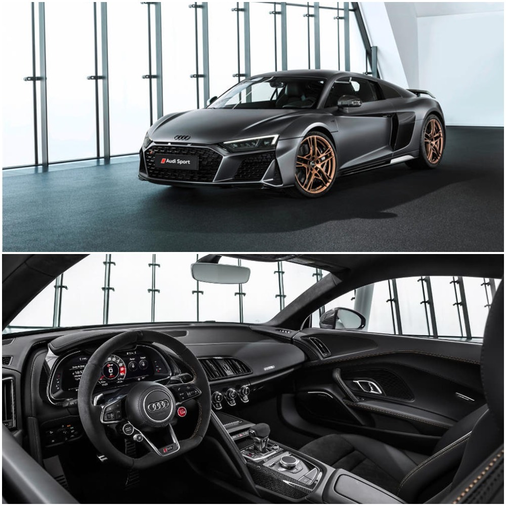 Nhưng chiếc xe này cũng không bị “lép vế” nhờ sở hữu một số điểm nhấn bằng đồng độc đáo và nội thất được đặt làm riêng với đường khâu tương phản bằng đồng cũng như huy hiệu “Decennium” thiết kế đặc biệt. Ngoài ra, trang bị đèn sàn xe cũng là ưu điểm được yêu thích của phiên bản R8 đặc biệt này.