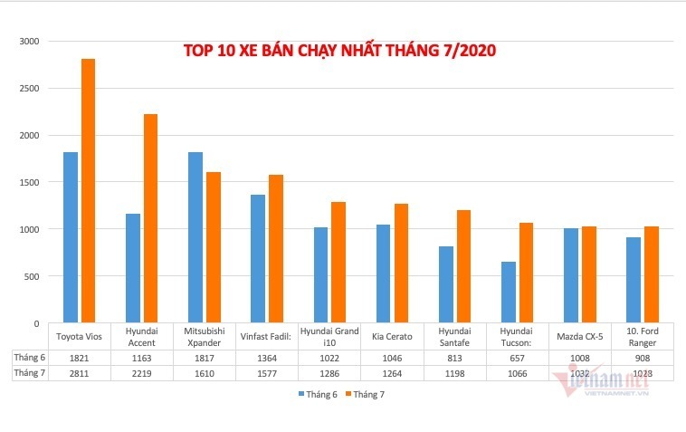 Dưới đây là 10 mẫu xe bán chạy nhất trong tháng 7: