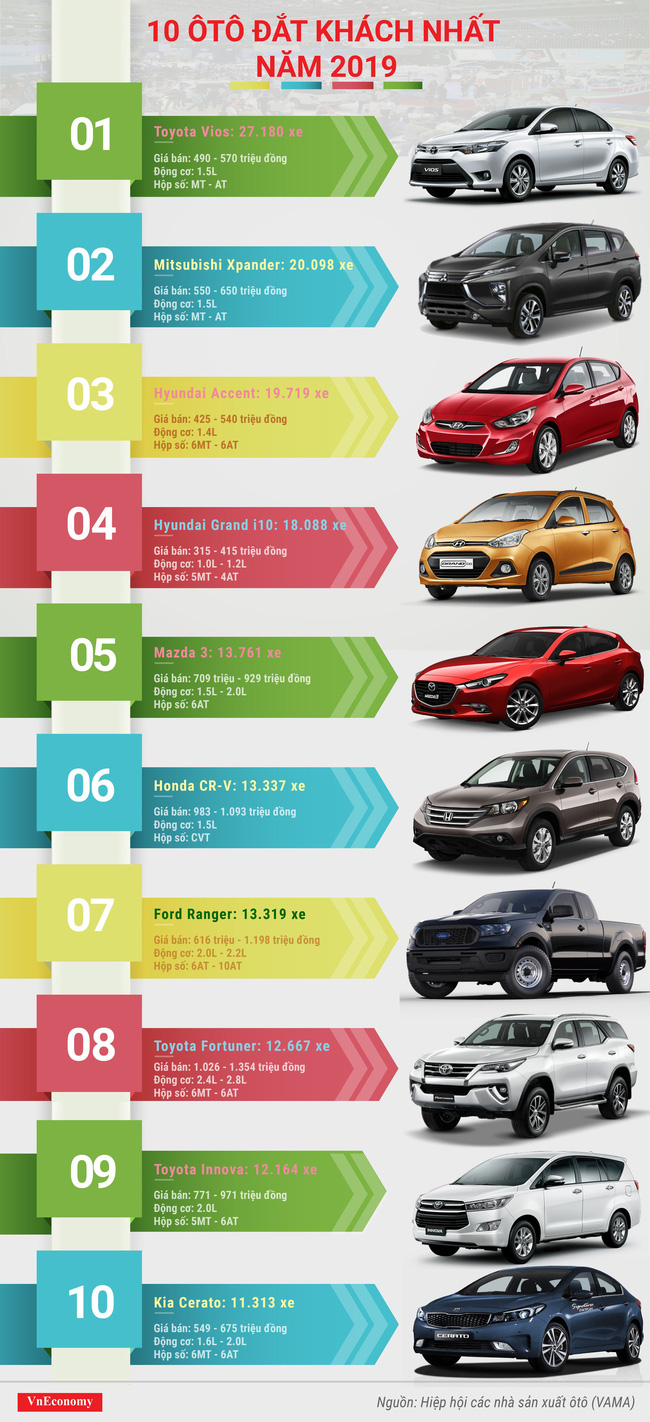 14/01/2020 15:2010 ôtô đắt khách nhất năm 2019