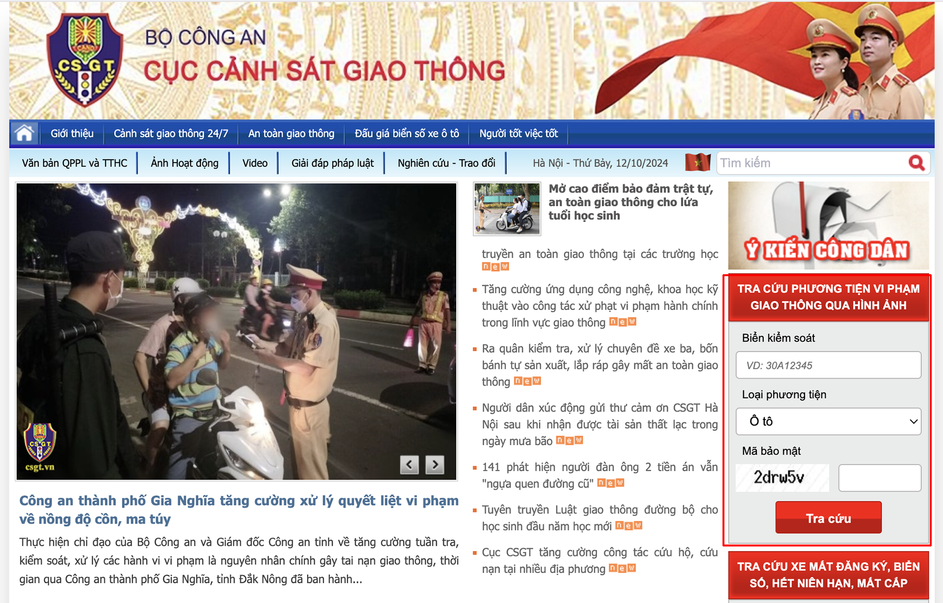 Tra cứu qua Cổng thông tin điện tử của Cục Cảnh sát giao thông bằng cách truy cập vào địa chỉ https://www.csgt.vn rồi điền đầy đủ biển kiểm soát phương tiện vào phần "Tra cứu phương tiện vi phạm giao thông qua hình ảnh".