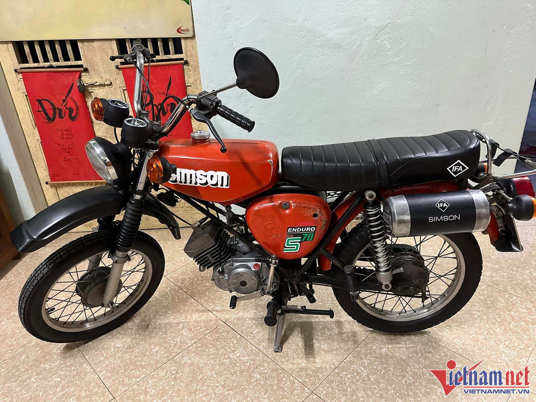 Chiếc thứ tư là Simson Enduro bô vắt S70 1988 DDR vẫn còn "zin". Tất cả các chi tiết trên xe như bình xăng, cốp, khung sườn, đùi ếch choãi, giằng khung.... đều nguyên bản từ nhà sản xuất.