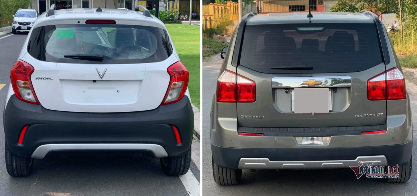 Giữa VinFast Fadil bản tiêu chuẩn và Chevrolet Orlando LTZ dù khác nhau về kích cỡ nhưng lại có điểm chung như sử dụng cụm đèn pha và định vị ban ngày dạng Halogen, gương chiếu hậu bên ngoài chỉnh/gập điện tích hợp đèn báo rẽ, phía sau là đèn báo phanh trên cao và thanh giá nóc có sẵn.