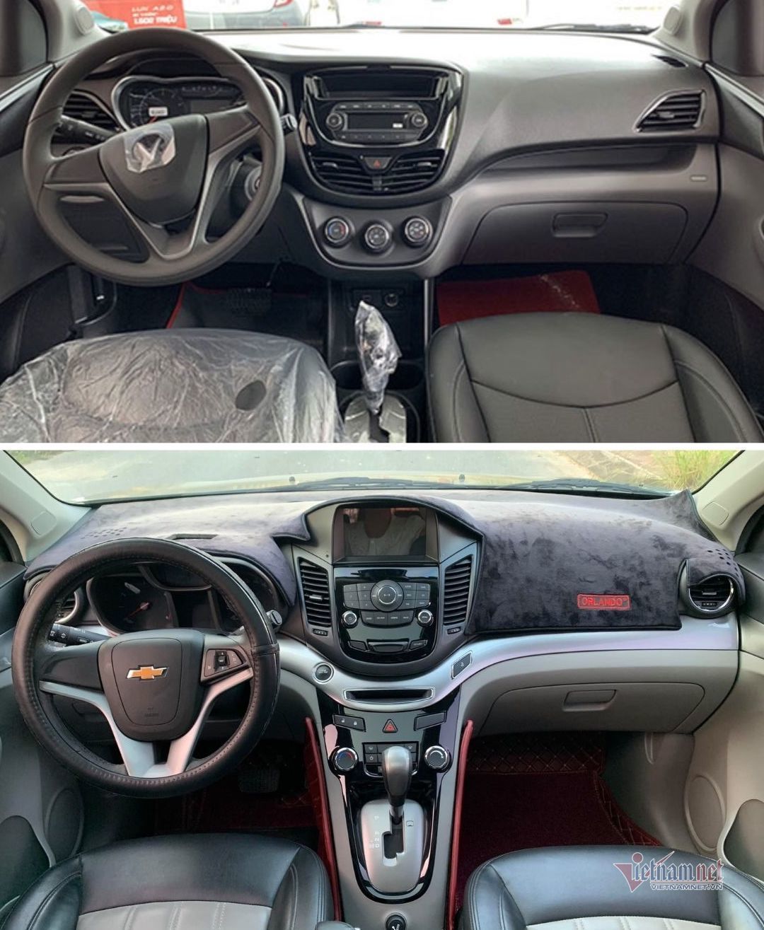 Khác với VinFast Fadil tiêu chuẩn, Orlando LTZ là phiên bản cao cấp nhất nên có sẵn nội thất bọc da, ghế lái chỉnh điện 6 hướng, nút bấm khởi động, vô-lăng tích hợp phím tiện ích, điều hòa tự động. Hệ thống giải trí trên Orlando LTZ cũng cao hơn Fadil tiêu chuẩn khi có sẵn màn hình LCD màu ở trung tâm, âm thanh 6 loa (fadil dùng 4 loa). Tiện nghi xe có cửa sổ trời chỉnh điện, sấy kính, cửa gió điều hòa cho hàng ghế sau, đèn pha tự động. Đặc biệt, mẫu xe 7 chỗ này có 2 hàng ghế phía sau gấp linh hoạt, có thể gấp phẳng toàn bộ giúp vận chuyển hàng hóa cồng kềnh dễ dàng.