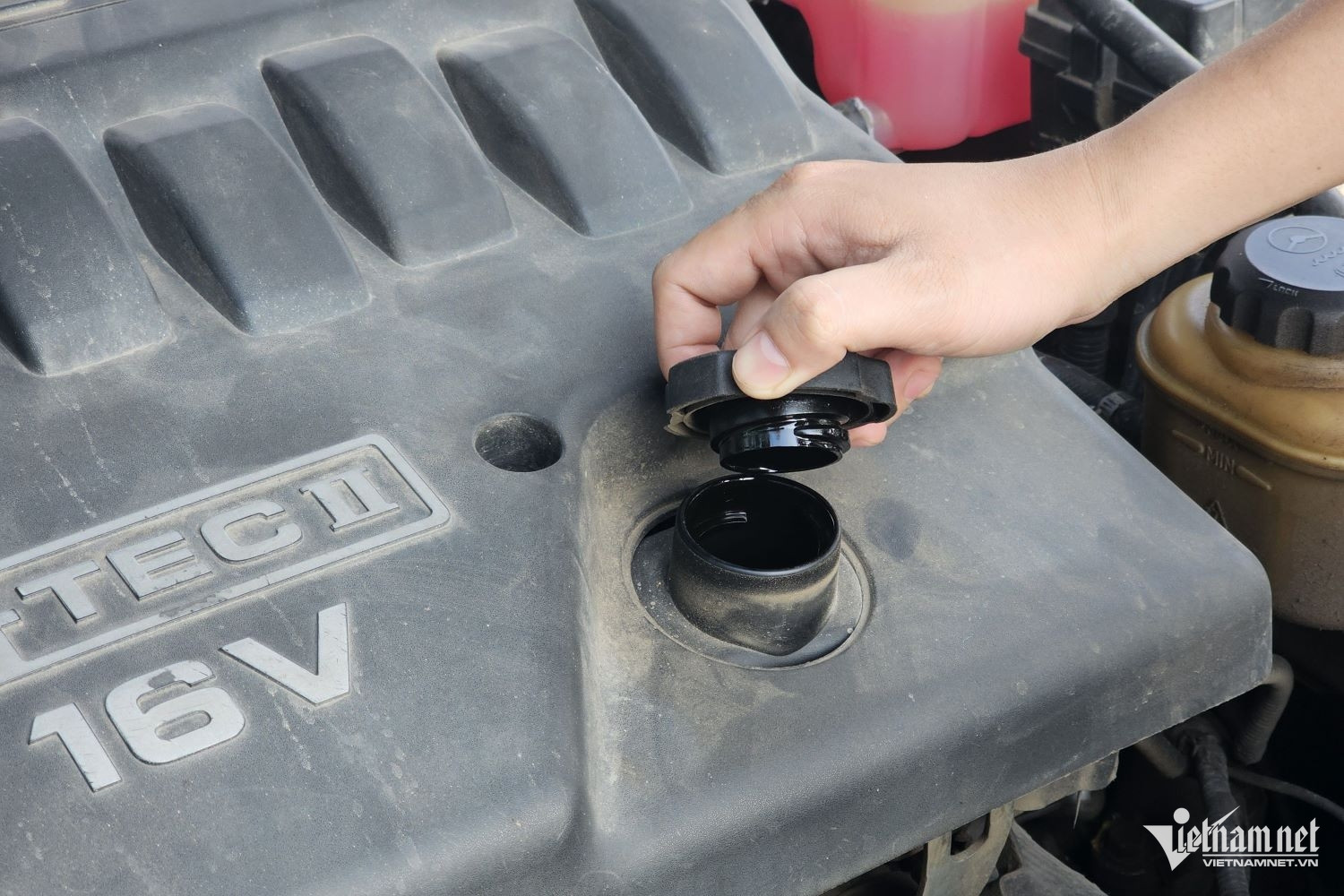 "Nếu mở nắp châm dầu động cơ ra và nhìn vào trong giàn cò, thấy màu vàng sáng choang tức là động cơ hoạt động tốt và chủ xe chăm chút tốt, bảo dưỡng định kỳ thay dầu thường xuyên. Ngược lại, nhìn vào trong dàn cò mà thấy két bẩn dạng sệt, đen đặc như bùn, cho thấy chủ xe lười bảo dưỡng, bỏ bê việc thay dầu hoặc thay dầu kém chất lượng", kỹ sư Thắng chỉ ra.