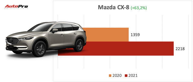 So sánh doanh số Mazda CX-8 với các mẫu xe trong phân khúc như Hyundai Santa Fe hay Kia Sorento thì vẫn thấp hơn, nhưng so với chính doanh số mẫu xe này trong 6 tháng đầu năm 2020 thì đã có sự tăng trưởng đáng kể, lên đến hơn 63%.