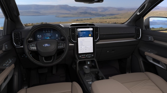 Ford Everest được đã loại bỏ cụm đồng hồ cơ truyền thống để thay thế bằng màn hình điện tử kích thước 8 inch hoặc 12 inch (tùy theo phiên bản) phía sau vô-lăng. Cụm điều khiển trung tâm có thêm phanh tay điện tử, cần gạt số bọc da và sạc điện thoại không dây.