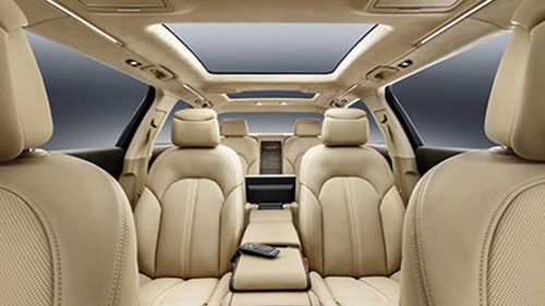 Bước vào bên trong cabin, tất cả sáu ghế ngồi đều quay mặt theo hướng di chuyển của xe, đi kèm với rèm che nắng. Khoang lái được ngăn cách với khoang hành khách nhằm tăng tính riêng tư của hành khách. Bên cạnh đó, vật liệu Valcona màu be thanh lịch và sang trọng cũng được trang bị. Các hàng ghế thứ 2 và 3 đều được trang bi chỉnh điện, riêng hàng ghế thứ ba còn được đi kèm với cụm điều khiển trung tâm với màn hình và ngăn làm mát.