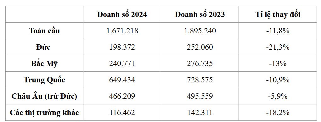 Vào giữa tháng 1 này, Audi đã công bố kết quả doanh số trong năm 2024. Số lượng xe bán ra trên toàn cầu của hãng giảm tới 11,8% xuống còn 1.671.218 xe so với 1.895.240 của 2023. Điều đáng nói là mọi thị trường lớn của Audi đều chứng kiến doanh số đi xuống, đồng nghĩa hãng không có một chỗ dựa vững chắc nào.