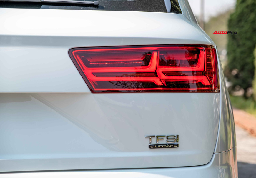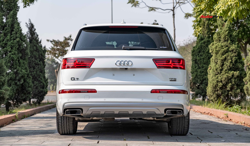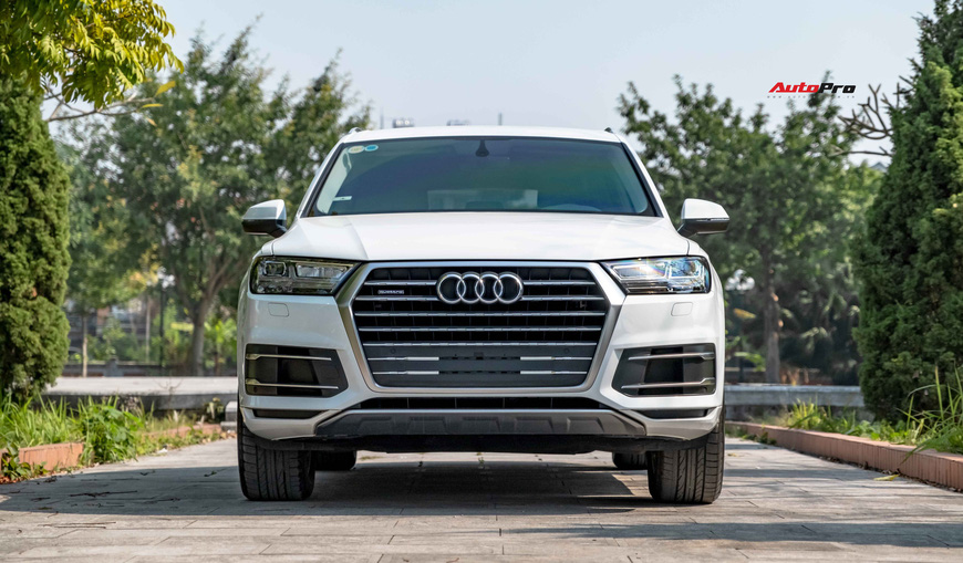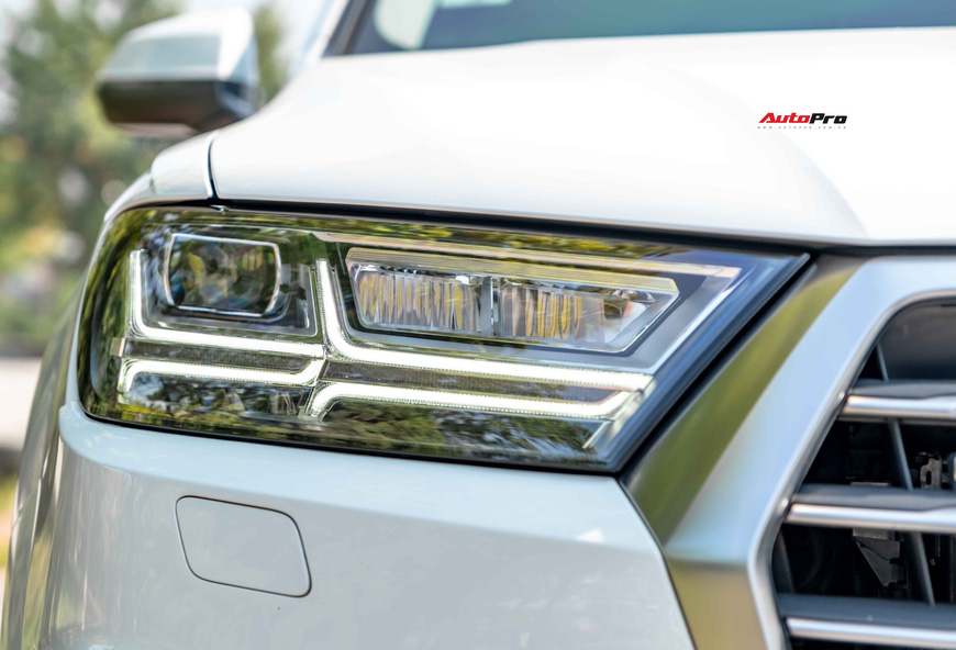 Chiếc Audi Q7 đề cập trong bài thuộc model 2018, đăng ký lần đầu năm 2019. Đến nay, mức ODO của xe mới đạt ngưỡng 17.000km. Đầu xe nổi bật với cụm lưới tản nhiệt hình đa giác đi kèm những thanh ngang thiết kế 3D được làm từ hợp kim nhôm. Hệ thống chiếu sáng sử dụng công nghệ LED, kết hợp cùng dải LED định vị cách điệu hình mũi tên đôi. Mâm xe trang bị loại 5 chấu kép nguyên bản, kích thước 19 inch.
