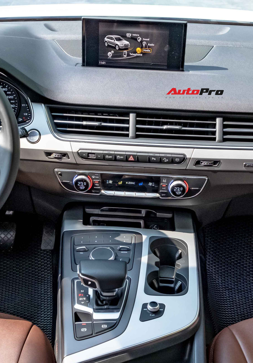 Tương tự như những mẫu xe cùng phân khúc, bên trong Audi Q7 kết hợp hài hòa giữa chất liệu da và một số chi tiết ốp gỗ. Sau quãng đường 17.000km, khoang nội thất của chiếc Audi Q7 2018 gần như không có sự xuống cấp.