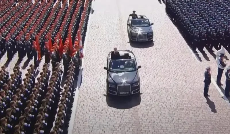 Trong phần diễu hành, hai chiếc Aurus Senat mui trần đặc biệt – dòng xe siêu sang do Nga tự sản xuất – đã thu hút nhiều ánh nhìn khi chở Bộ trưởng Quốc phòng Andrey Removich Belousov và Tư lệnh Lục quân Nga, Đại tướng Oleg Salyukov, tiến qua Quảng trường Đỏ để kiểm tra đội hình.