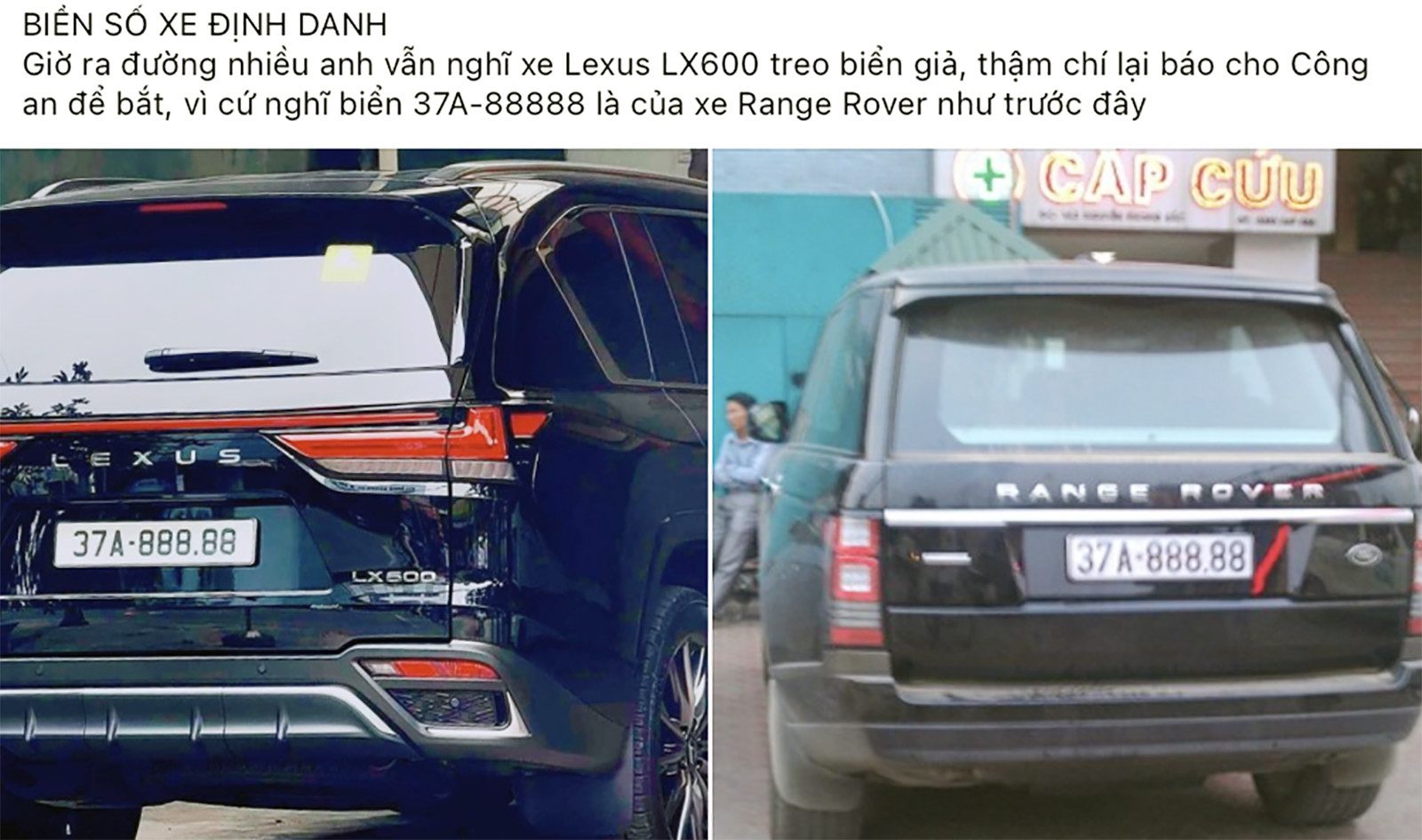Hình ảnh biển số 37A – 888.88 vốn của xe Land Rover Range Rover nay gắn ở xe Lexus LX600 gợi cảm giác "mới lạ" trong giới chơi xe. "Nếu không có quy định biển định danh, hẳn nhiều người sẽ nghĩ Lexus LX600 đeo biển giả", một cư dân mạng bày tỏ.