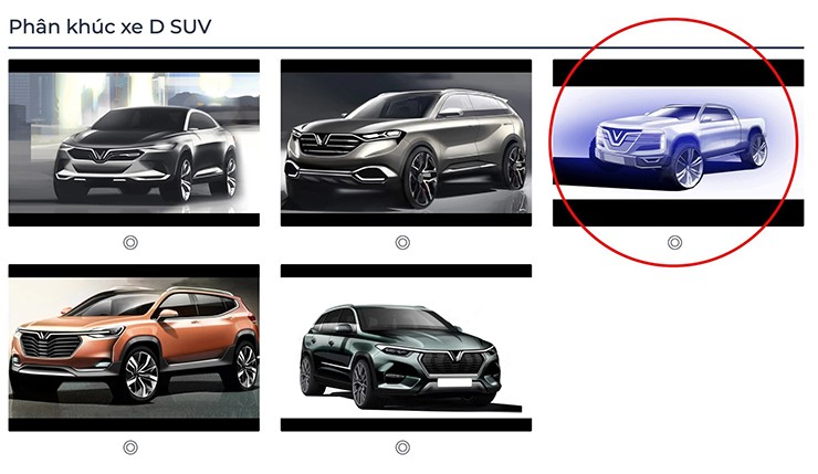 Thông tin VinFast cân nhắc làm bán tải thậm chí đã có từ tận 5 năm trước, thời điểm hãng thăm dò các thiết kế xe được lòng người dùng và bất ngờ đính kèm ảnh bán tải vào hạng mục phân khúc SUV hạng D.