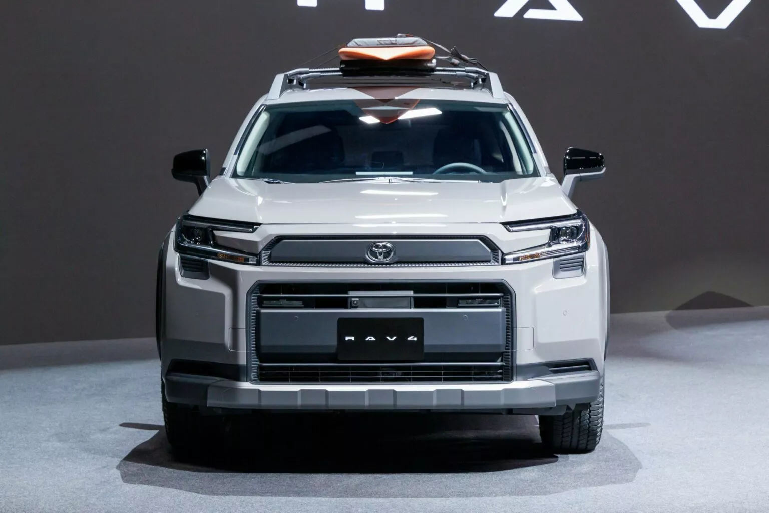 Phiên bản Adventure nổi bật với các chi tiết màu đen ở phía trước, cản xe vuông vức, lưới tản nhiệt lớn hơn, hốc hút gió bổ sung và tấm bảo vệ gầm xe hầm hố hơn. Đó là một diện mạo phù hợp hơn với một chiếc bán tải so với các biến thể tiêu chuẩn hoặc GR Sport của RAV4.