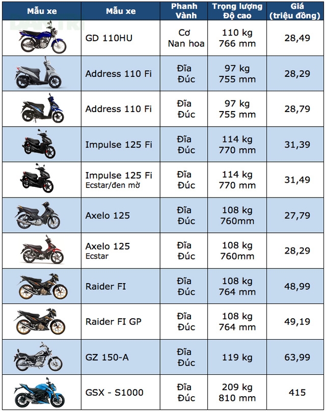 Bảng giá xe máy Suzuki tại Việt Nam
