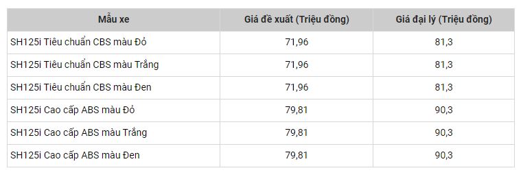 Khảo sát một HEAD Honda ở khu vực tỉnh Bình Dương cho thấy, Honda SH125i mới bản Tiêu chuẩn có giá bán ra là 81,3 triệu đồng, chênh so với giá niêm yết tầm 9,4 triệu đồng. Trong khi SH 125i mới bản Cao cấp có giá bán ra là 90,3 triệu đồng, chênh cao so với giá niêm yết tầm 10,5 triệu đồng. Như thế mức chênh này rõ ràng đã giảm rất sâu, mặc dù vẫn còn rất cao so với mức đề xuất.